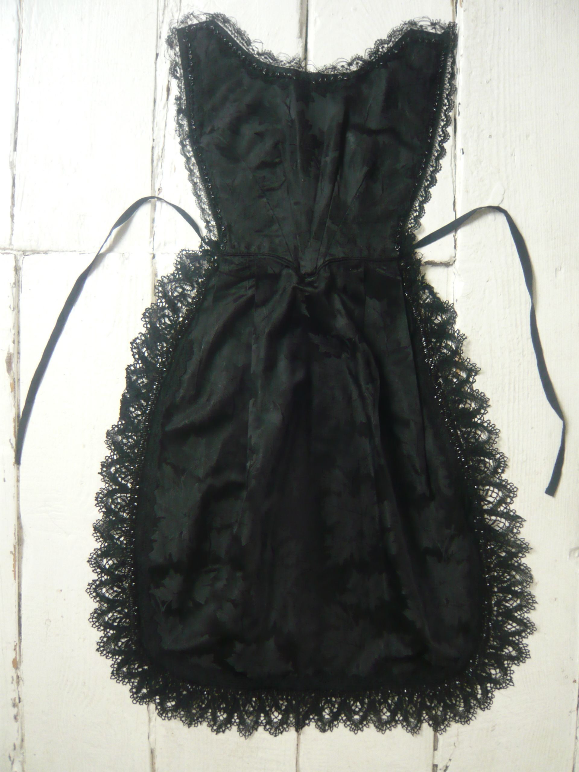 L’élégance de la femme peut se manifester par des éléments de décoration, le plus souvent de la dentelle au fuseau, du Puy ou de la Blonde qui entoure tout ou partie du tablier ; une bande de perles de jais peut aussi à l’occasion être présente sur le pourtour, rehaussant la dentelle. Ces bandes de dentelle et de jais sont toujours présentes quand les tabliers sont de forme arrondie dans le bas, elles le sont beaucoup moins quand le bas du tablier est droit. Les étoffes employées sont le taffetas, le satin, la moire, le broché, l’ottoman, la plupart du temps en soie ou en belle cotonnade. La couleur élégante par excellence à partir des années 1870 environ étant le noir, nombre de ces tabliers sont donc sombres. Lorsqu’il y a couleur, celle qui semble la plus répandue est l’ocre, « caramel » à « pain brûlé ».