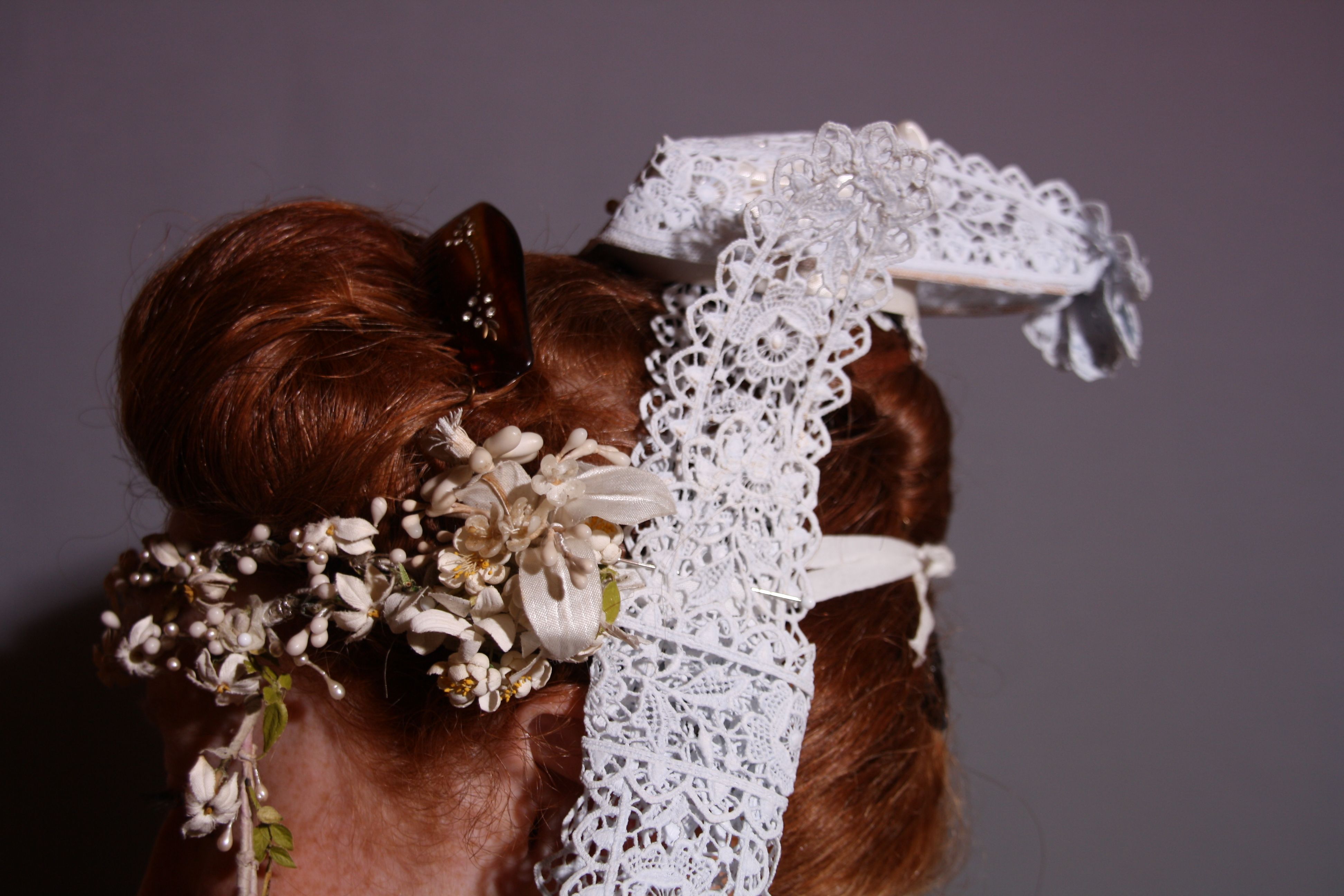 C’est un peu l’effervescence, ce matin du 19 Février 1939, chez les Connan, au village de Quinquizio en Lescouët-Gouarec. Ils marient leur fille Marie-Louise à François Tronscorff. En attendant de partir pour la mairie, crêpes, gâteaux et café sont servis d’abondance. La mère de la mariée, Réjane, est en deuil : coiffe en tulle simple avec un fond noir, manchettes en crêpe, soulignent son état. Elle porte le tablier noir en soie brochée des années 1910-1915, la coiffe étant de même époque. Derniers regards pour s’assurer que rien ne cloche dans la tenue des tourtereaux... Pour lui, ce n’est pas compliqué : la mode « mille boutons » toujours portée par son beau-père n’a plus cours mais est remplacée par le costume de ville. Marie-Louise, elle, a gardé la tenue traditionnelle du pays pourlet : corsage, corselet, jupe, tablier et coiffe surnommée la « Brouette ». Le costume a été peint en 1933 chez Mesdemoiselles Le Gall habitant rue Trébuil à Guémené. Le tablier blanc est en crêpe « georgette » acheté au mètre. Celui-ci était souvent teint après le mariage pour pouvoir le reporter. Ainsi, les riches tabliers de velours brodés façon Richelieu disparaissent totalement pour les mariées, seule la demoiselle d’honneur le revêt. Touche de chic récente : les bas et souliers blancs. Le médaillon, le bracelet, la promesse (la bague de fiançailles), tout y est. Les musiciens sont prêts. On peut y aller. Et vive la mariée ! Le cortège est parti à pied, suivant le char à banc jusqu’à la mairie. A la sortie de l’église, les deux musiciens Jean-Marie Bogard au saxophone et Jobica à l’accordéon diatonique entraînent la noce. Celle-ci, guidée par les honneurs, s’arrête dans tous les cafés du bourg pour y boire et pour y danser.