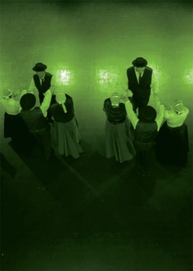 Après s’être déliés les bras (par dessus la tête), les danseurs forment un rond et progressent vers la gauche sur un pas de quadrille (16 temps).